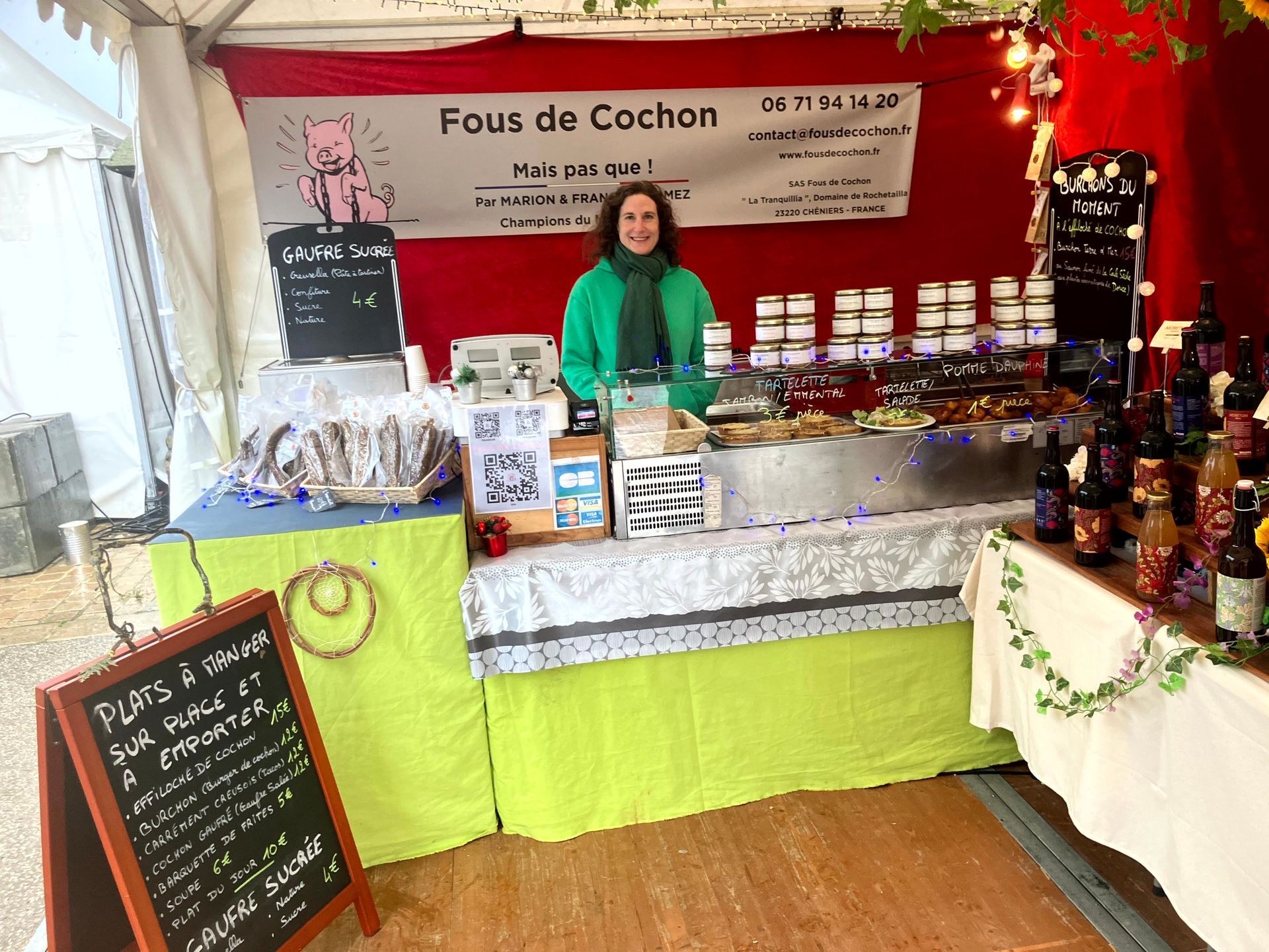 - charcuteries cuites et sèches ainsi que de plats cuisinés, de septembre à mai, lors de fêtes médiévales, salons gastronomiques, marchés de producteurs et événements ;