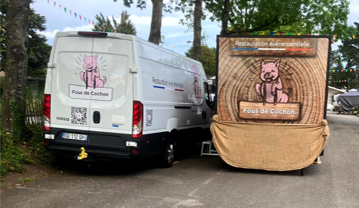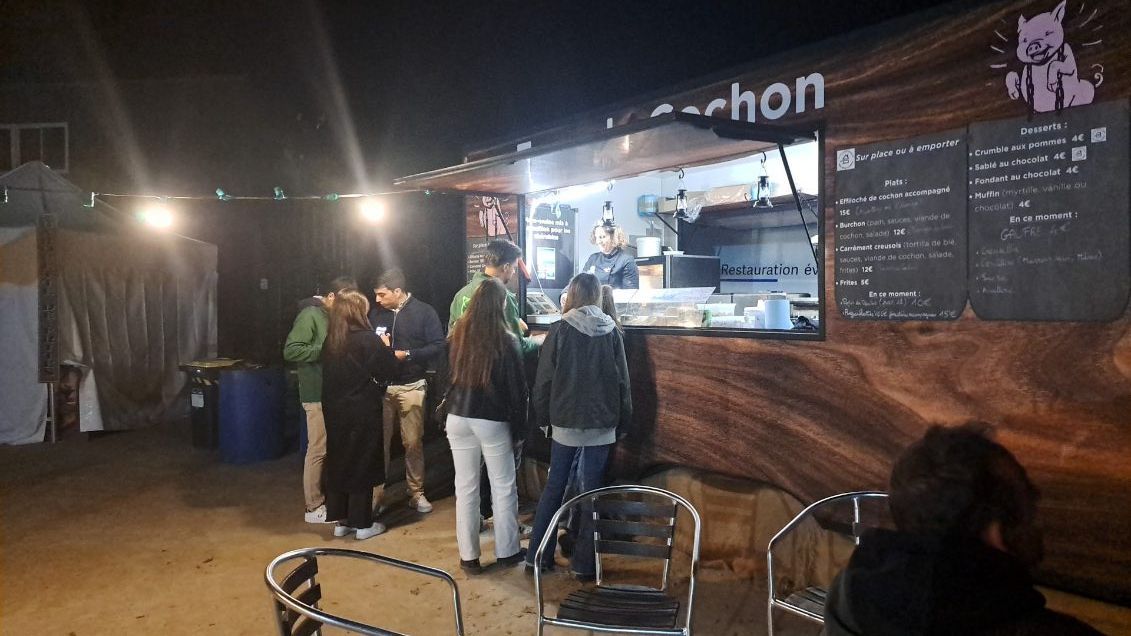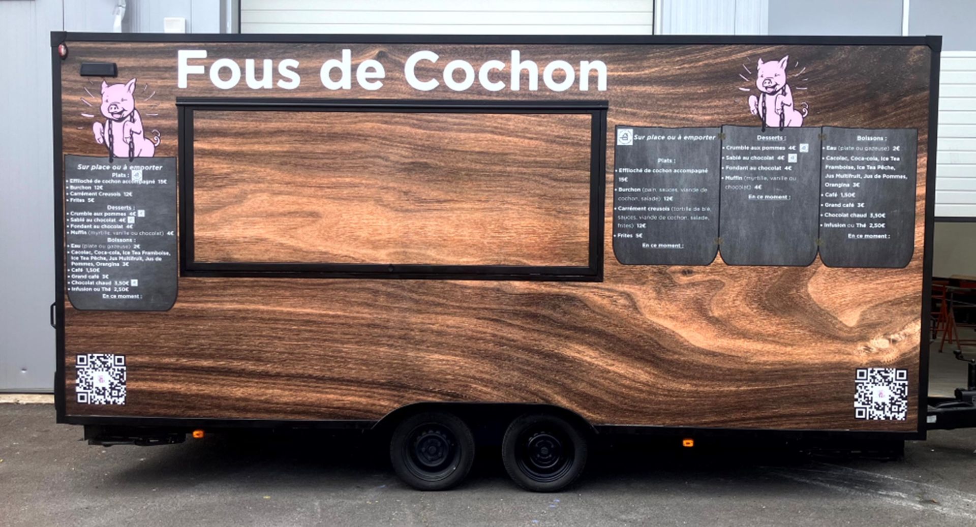 C'est une cuisine mobile spécialisée dans le cochon, mais pas que, puisque nous travaillons aussi d'autres espèces de viandes, des poissons, du végétarien, du sucré et des boissons (froides ou chaudes, alcoolisées ou non).