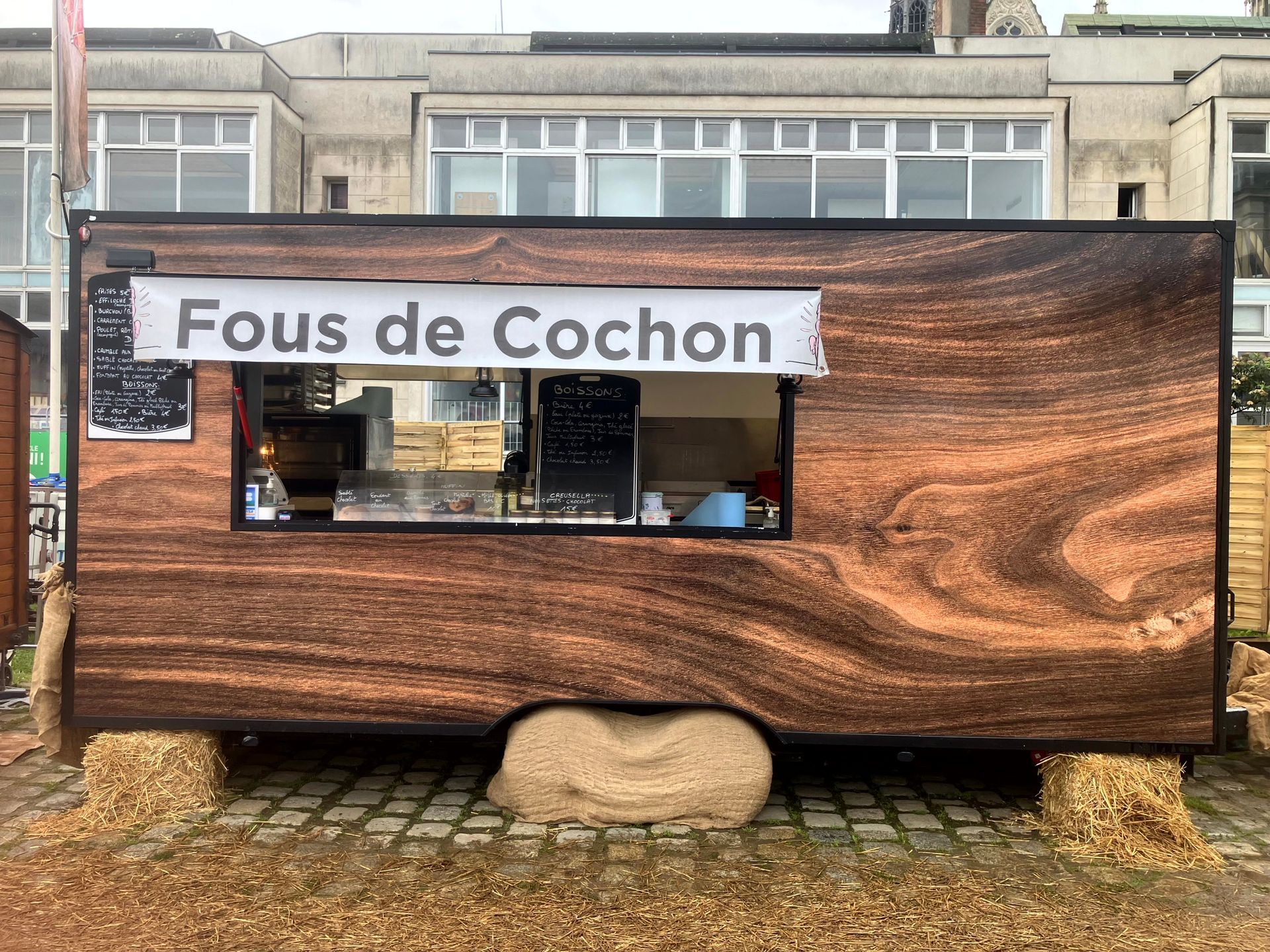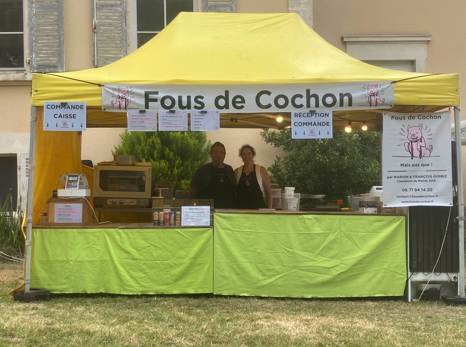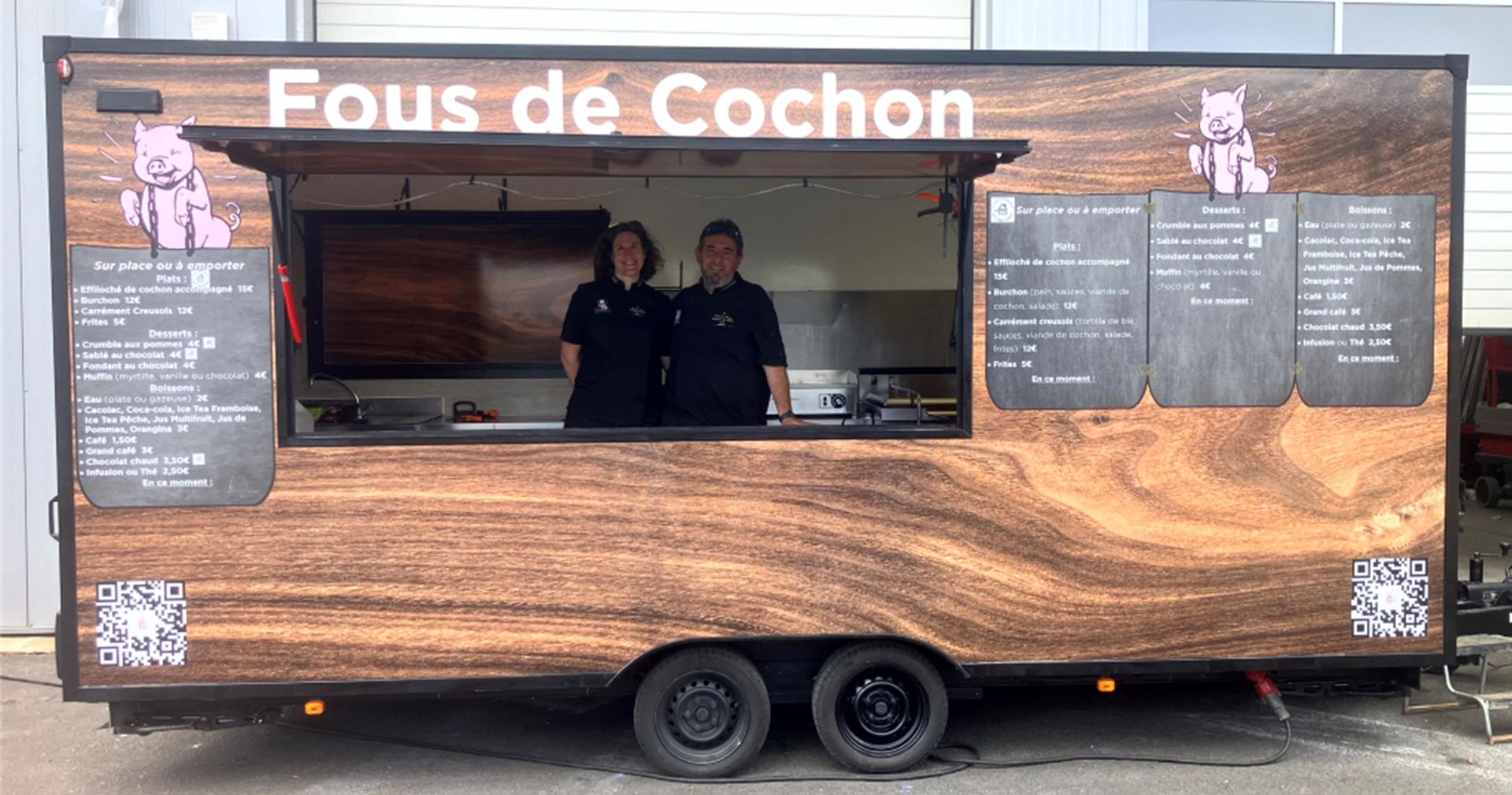 C'est une cuisine mobile spécialisée dans le cochon, mais pas que, puisque nous travaillons aussi d'autres espèces de viandes, des poissons, du végétarien, du sucré et des boissons (froides ou chaudes, alcoolisées ou non).