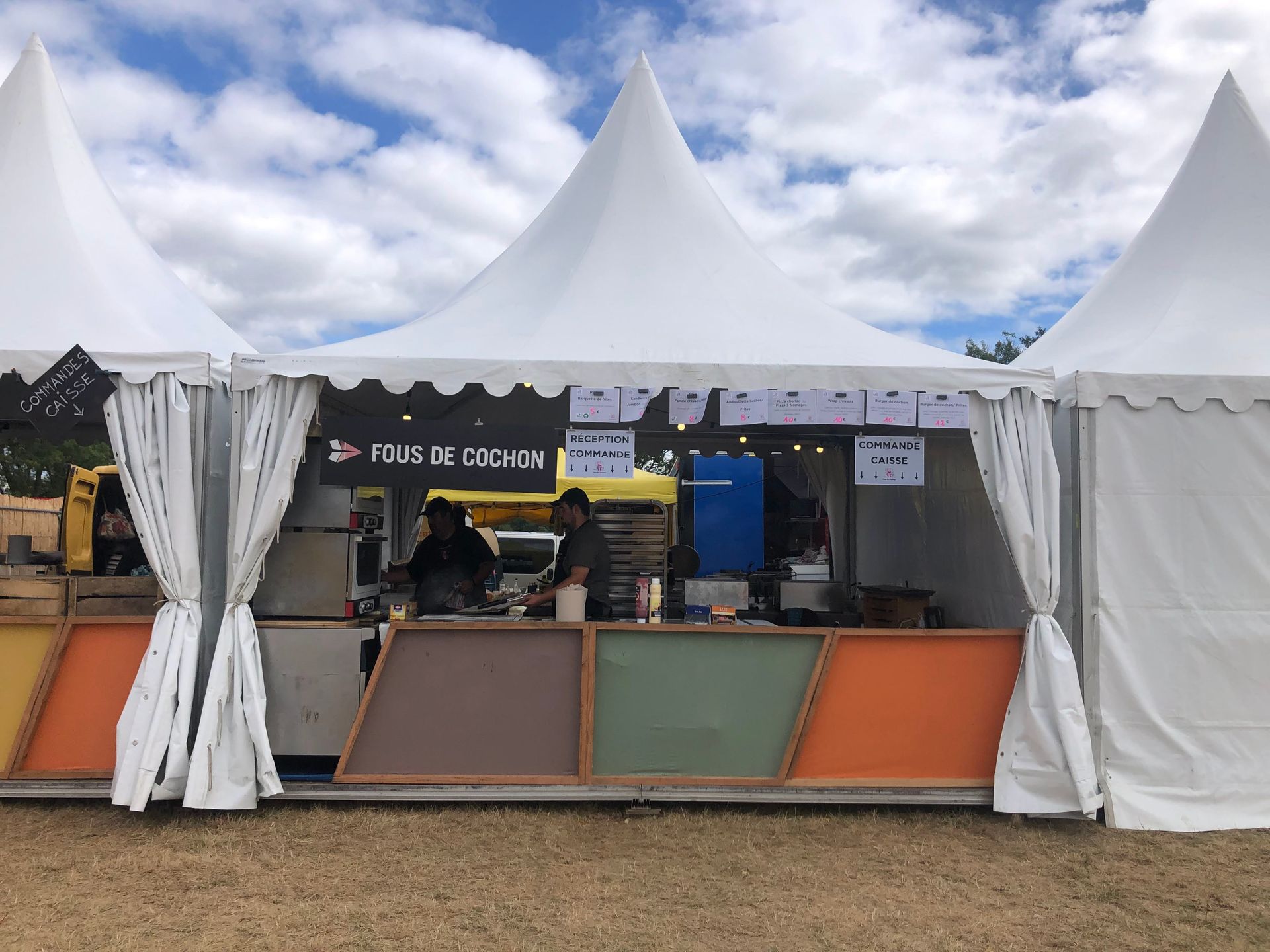 - plats à emporter, de mai à septembre, lors de festivals, fêtes médiévales, mariages et événements.