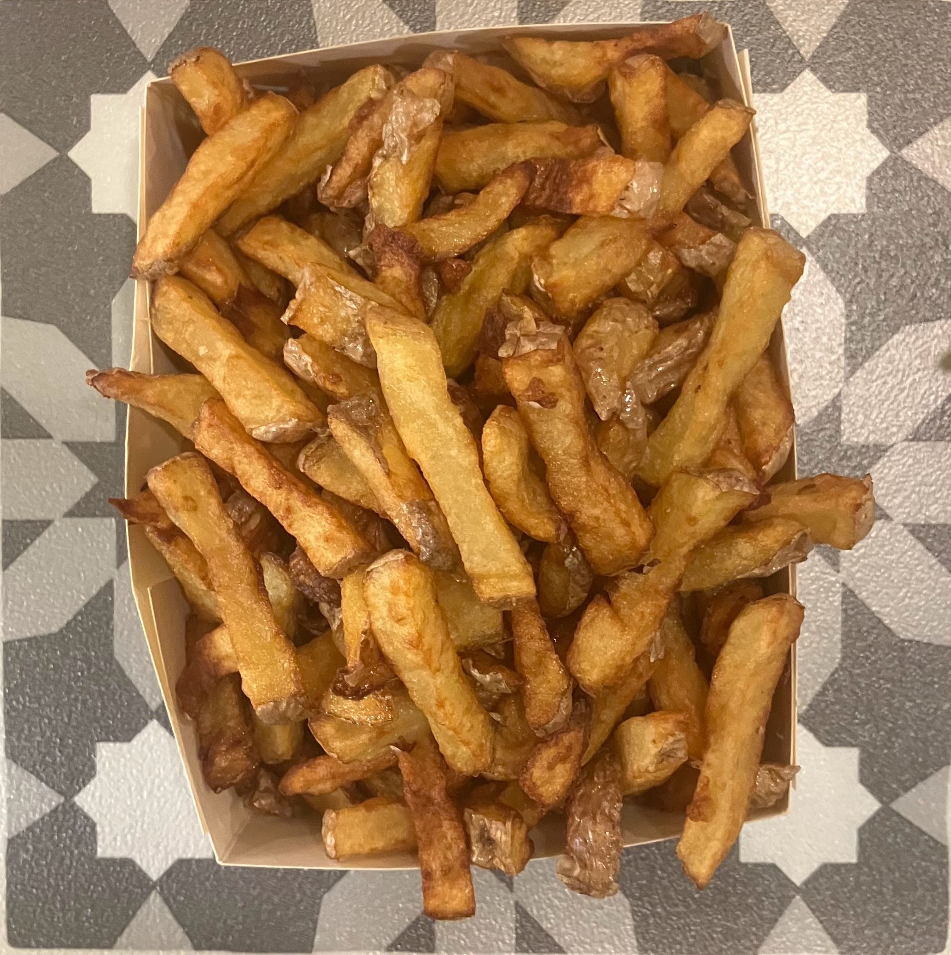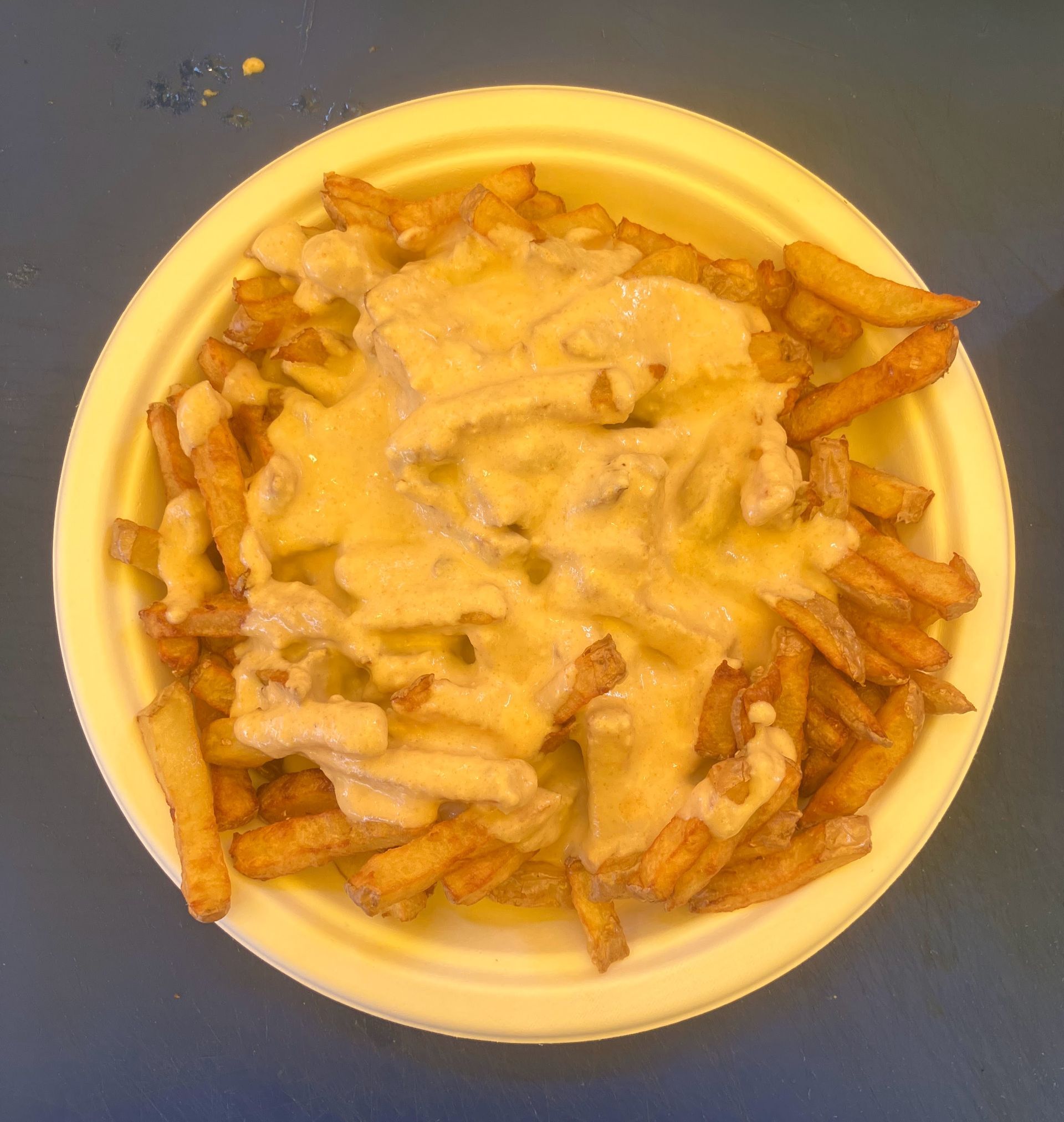 Sachez que nous travaillons avec le plus possible de produits locaux, que tous nos plats et nos sauces sont faits maison, que nos pommes de terre sont coupées, précuites et cuites sur place et que tous nos contenants sont recyclables et biodégradables.